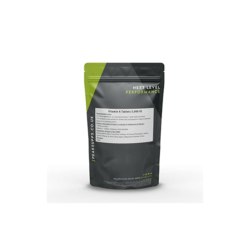 Peak Supps Vitamin A 5000 IU Tablets are suitable for those looking for a high-quality Vitamin A supplement. They are suitable for the general public and athletes.