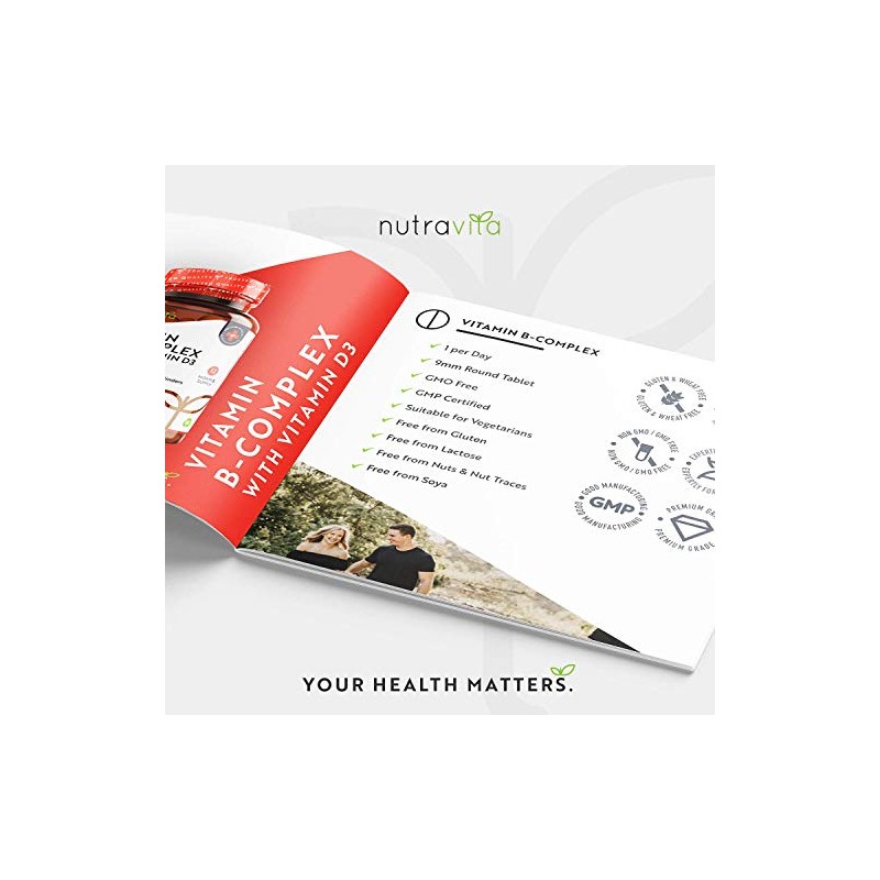 Vitamin B Complex 1 Year Supply Enriched with Vitamin D - Vegetarian Tablets - 8 Bio-Available Forms of High Strength B Vitamins Including Biotin, VIT B1 B2 B3 B5 B6 B12 - Made in The UK by Nutravita