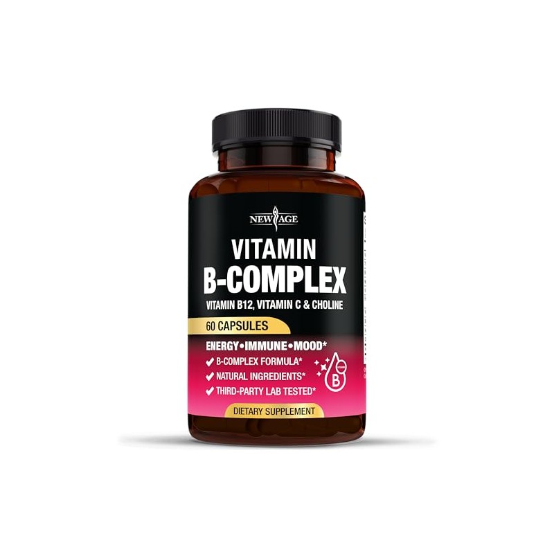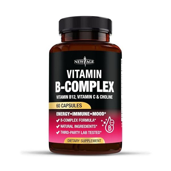 B-Complex Supplement - Super B complex with vitamin C, Choline, and Inositol! B complex vitamin supplements: a full antioxidant blend in a single capsule! Sustained Release + Energy: Your daily dose of energy - Vitamins B1, B2, B3, B5, B6, B7, B8, B9, B12 - super B complex with vitamin C, Choline, and Inositol! B complex vitamin supplements: Energy, Brain & Heart – Super vitamin B complex is intensive health support for energy metabolism Extra Source of B-Complex Vitamins – Our extra strength formula contains all the essential B Vitamins in just one capsule. New Age Standard - Your safety and health mean everything to us. For that reason, New Age formulas are proudly made in the USA in a registered and certified facility. New Age sets the industry standard. We know transparency is important to you and it should!