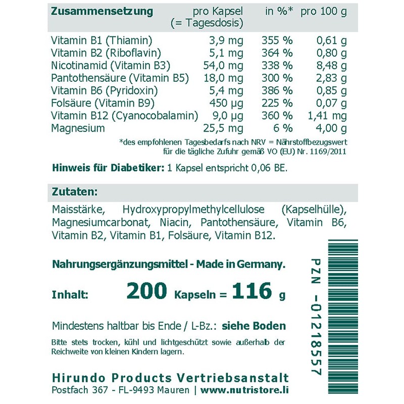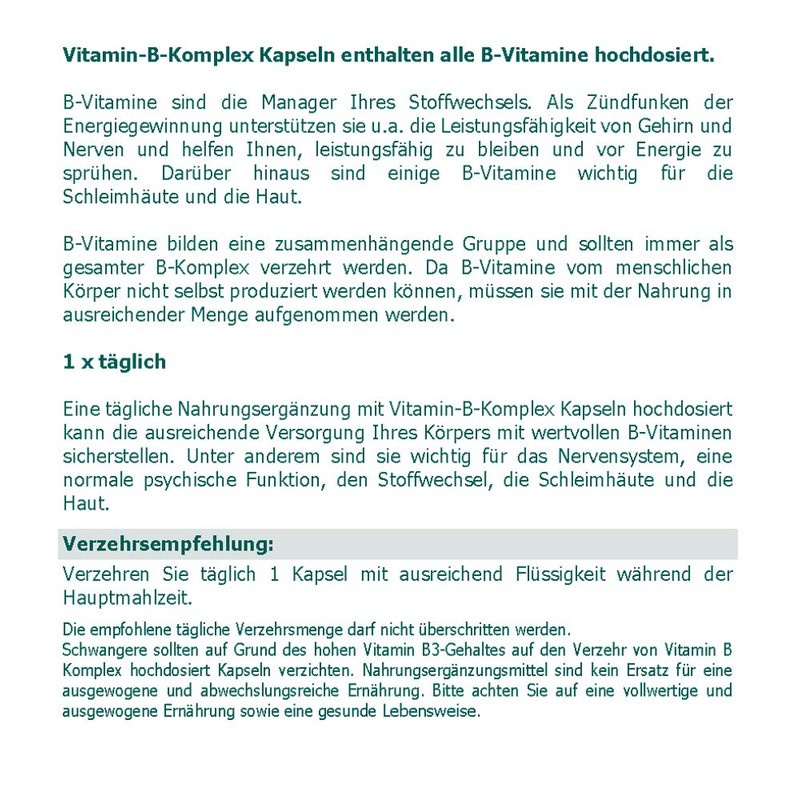 PZN: 01218557 Vitamin B complex high dose capsules pack of 200