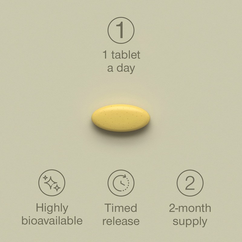 These SuperSelf super vitamin B tablets have been carefully designed to be highly potent. A timed-release formula increases overall absorption by spreading it throughout the day. Using highly bioavailable forms of the vitamins, each tablet contains 700% of the recommended intake for B6 and 1000% for B12, plus at least 100% for folic acid and other B vitamins. Suitable for vegetarians and vegans, dairy and gluten-free. Each package contains 60 one-a-day tablets, a 2-month supply.