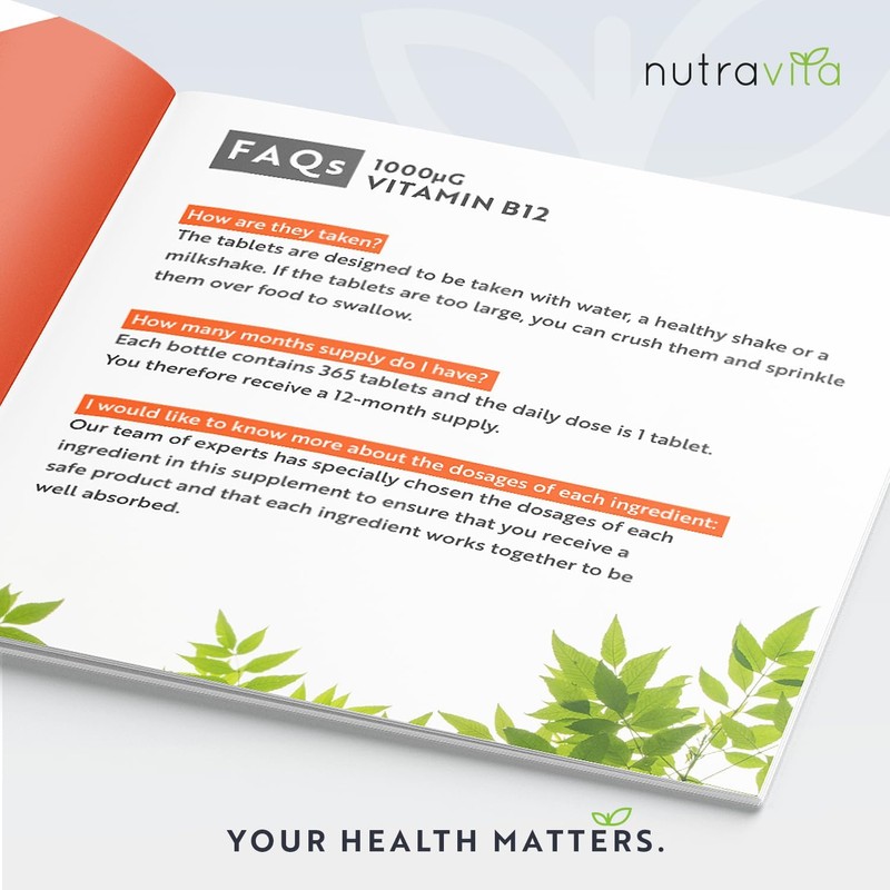- ✔ WHY NUTRAVITA'S VITAMIN B12 1000mcg? – Our Vitamin B12 supplement comes with a 12 month supply unlike many other Vitamin B12 supplements on the market which only offer a half year supply. Furthermore, our 1000mcg Vitamin B12 tablets are derived from Methylcobalamin, a pure and active form of B12 for efficient absorption. By purchasing our supplement you can be rest assured that you are getting one of the best value for money supplement on the market.