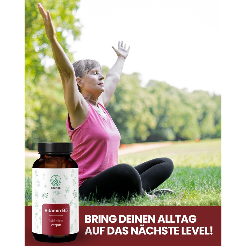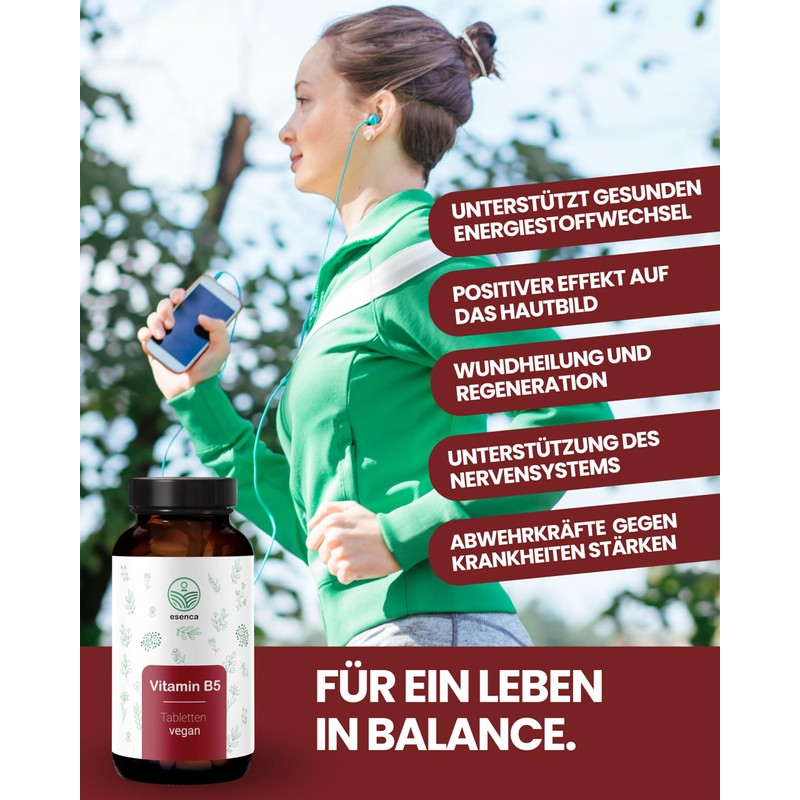 - High dose vitamin B5 (pantothenic acid) - Each tablet contains 200 mg of pure vitamin B5, ideal for supporting your energy metabolism and promoting healthy skin and hair.