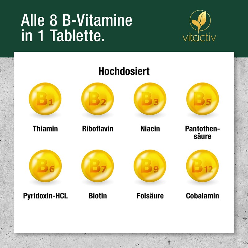 - Strong through the day: the tablets are especially suitable for athletes, vegetarians, vegans, people over 50 and anyone who wants to do more. The B vitamins can support the normalization of energy metabolism, heart function, nervous system and immune system. In addition, they contribute to mental performance and reduce fatigue.