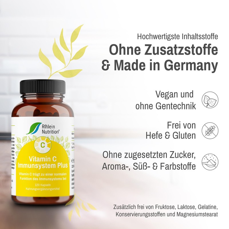Vitamin C 500 mg - High Dose - 120 Capsules 4 Months Supply - Strengthen Immune System - Vegan Without Additives Made in Germany - Rhein Nutrition