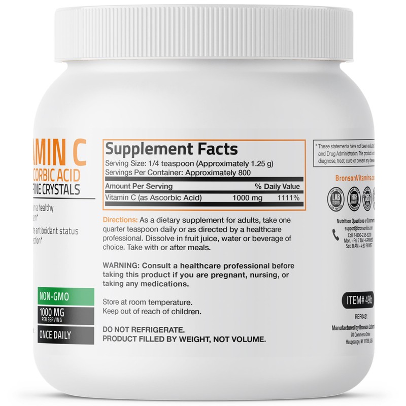 - Superior Quality Formula: Non-GMO Pure Ascorbic Acid Soluble Fine Crystals. Tested at our cGMP Registered New York Facility.