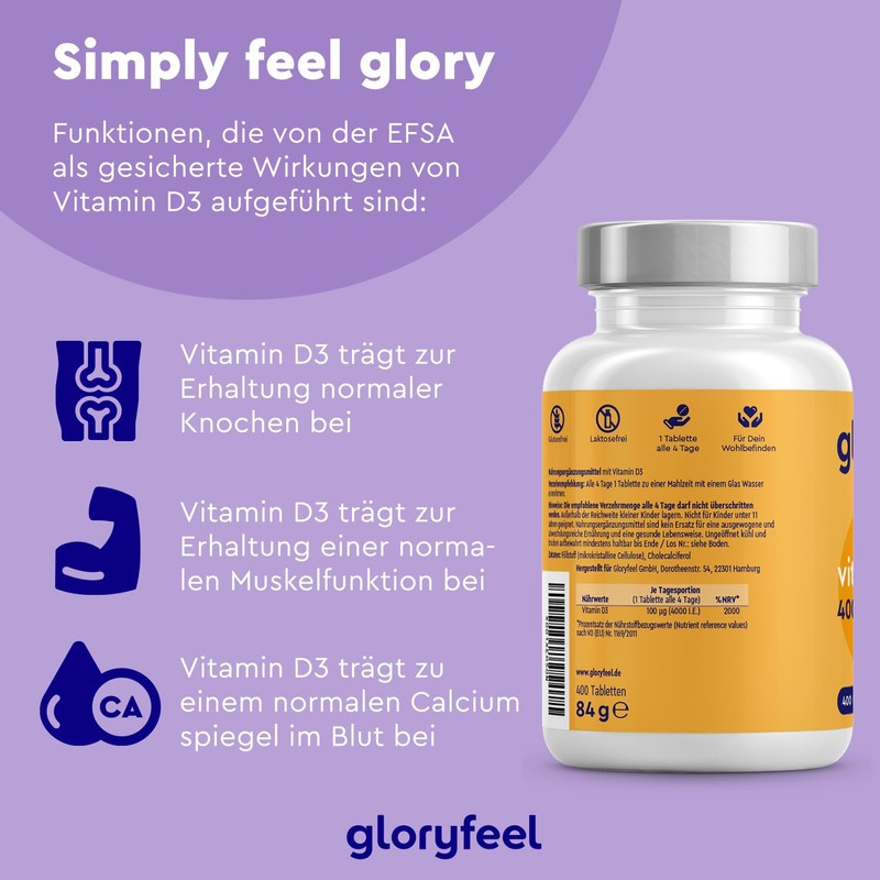 - ☀️ VITAMIN D EXTRA HOCHDOSIERT 4.000 I.E. - Unsere Vitamin D Tabletten liefern Dir 4.000 I.E. (100 µg) reines Vitamin D3 pro Tablette. Die empfohlene Tagesdosis von 1000 I.E. wird perfekt durch eine Tablette alle 4 Tage abgedeckt. Hole Dir mit unserem hochdosierten Vitamin D 4000 die Extra-Portion Sonnenschein für Deine Gesundheit. Unsere Sonnenvitamine reichen für über 1 Jahr Vorrat!