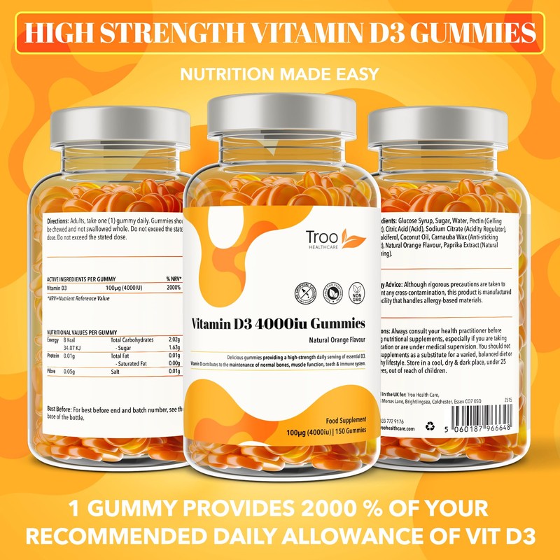 - 🍊 Delicious Vitamin D Gummies: Each gummy offers a 4000IU/100μg of Vitamin D3, paired with a tantalising natural orange flavour.