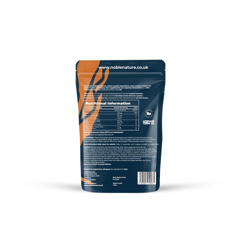 - 💪 High Strength Delivers 4000IU Vitamin D3, 100µg K2, 2002mg Turmeric, 500mg Ginger, and 30mg Black Pepper per daily serving. 95% curcuminoid content ensures you're getting maximum benefit.