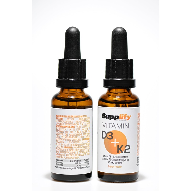 - 🤸 IMMUNBOOSTER & KNOCHENSTÄRKER – Supplify Vitamin D3 + K2 Tropfen stärken dein Immunsystem effektiv und unterstützen die Gesundheit von Knochen und Zähnen nachhaltig. Die ideale Kombination, um deinen Körper widerstandsfähig und stabil zu halten – ohne Gentechnik und Tierversuche.