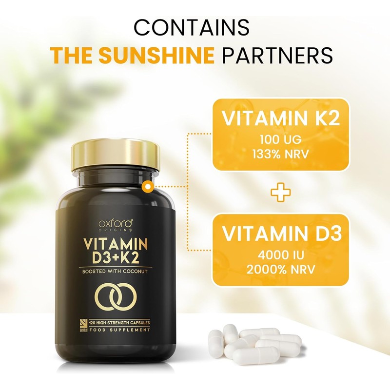 - ✔️ BOOSTED WITH COCONUT OIL FOR HIGHER ABSORBTION - Vitamin D is fat soluble, meaning it requires fats to be absorbed by the gut. Consequently, it's a good idea to supplement with a meal containing fats. To further maximise bioavailability, we at Oxford Origins formulate with coconut oil powder, which contains LCT and MCT fats. This ensures our customers the greatest chance of positive results with supplementation.
