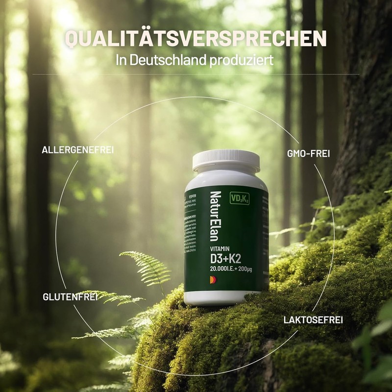 Vitamin D3 K2 High-Dose Capsules – 20,000 IU D3 + 200 mcg K2 MK7, 180 Vegetarian Capsules, Made in Germany