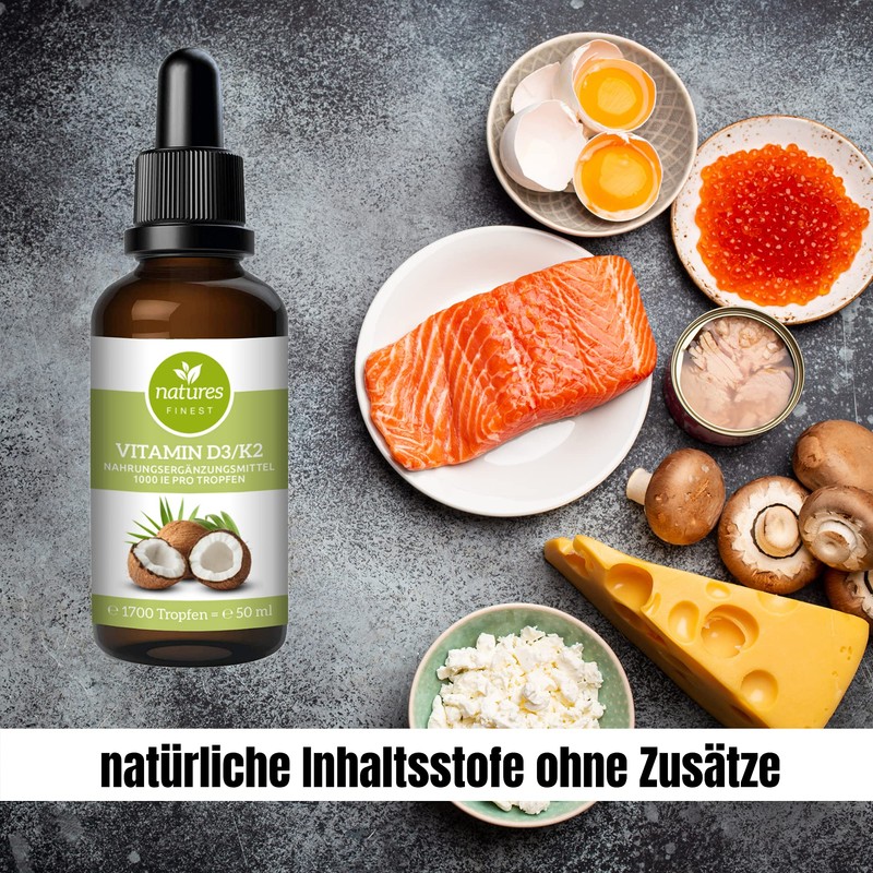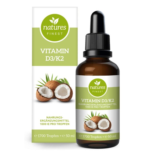 Vitamin D3 K2 High Dose, natures FINEST - 50 ml Premium: 99.7+% All-Trans + Highly Bioavailable D3 - Laboratory Tested, High Dose, Liquid