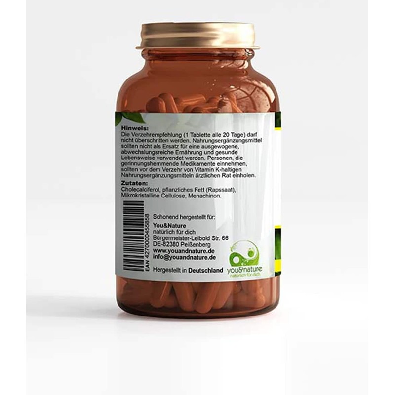 - Vegetarian: We completely do not use animal products in the production of the product. Our vitamin D3 K2-Mk7 is without additives