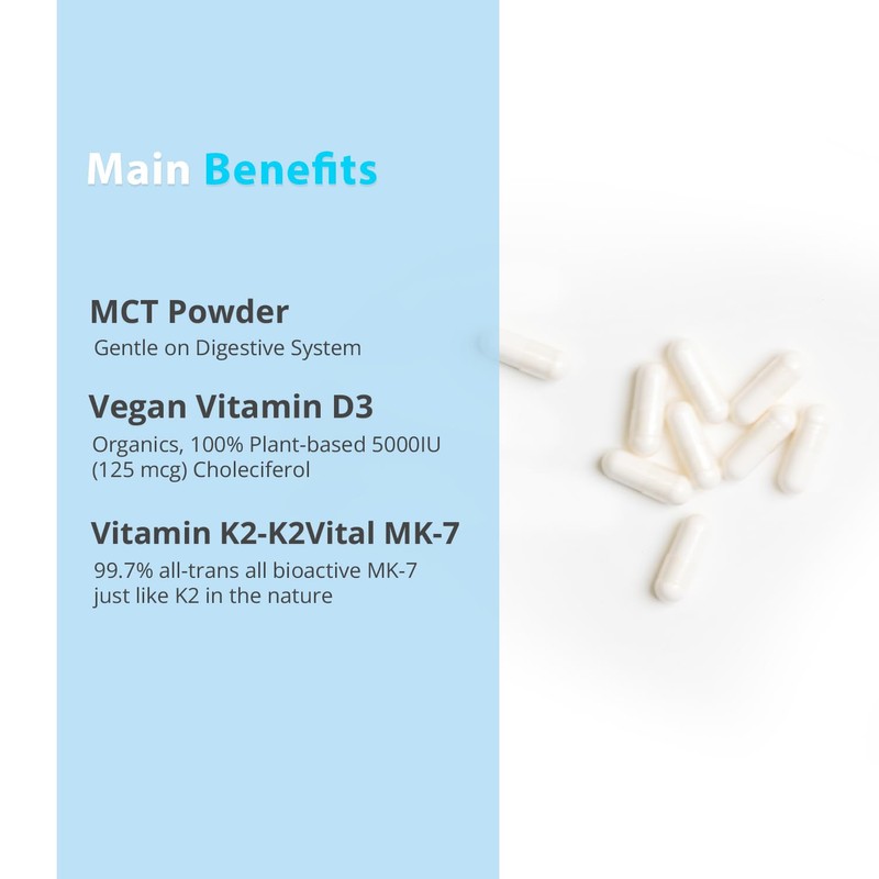 Magceutics Vitamin D3 K2 with MCT, 5000 IU Vegan D3 & 100 mcg MK7 K2, Support Strong Bones and Immune Health - 60 Capsules (60 Days Supply)
