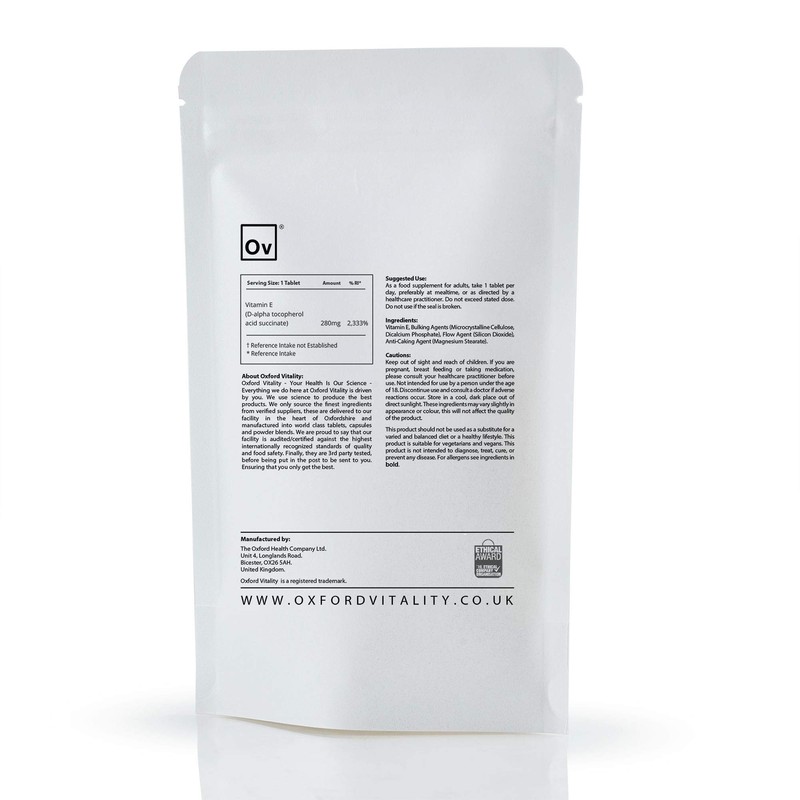 - ✔ MARKET LEADING PRODUCT SAFETY - Our Vitamin E tablets have been expertly packed in the UK in our own facility in Oxfordshire. We aim to continuously demonstrate our drive toward continual improvement and our effort to safeguard our products from contamination and poor quality ingredients.