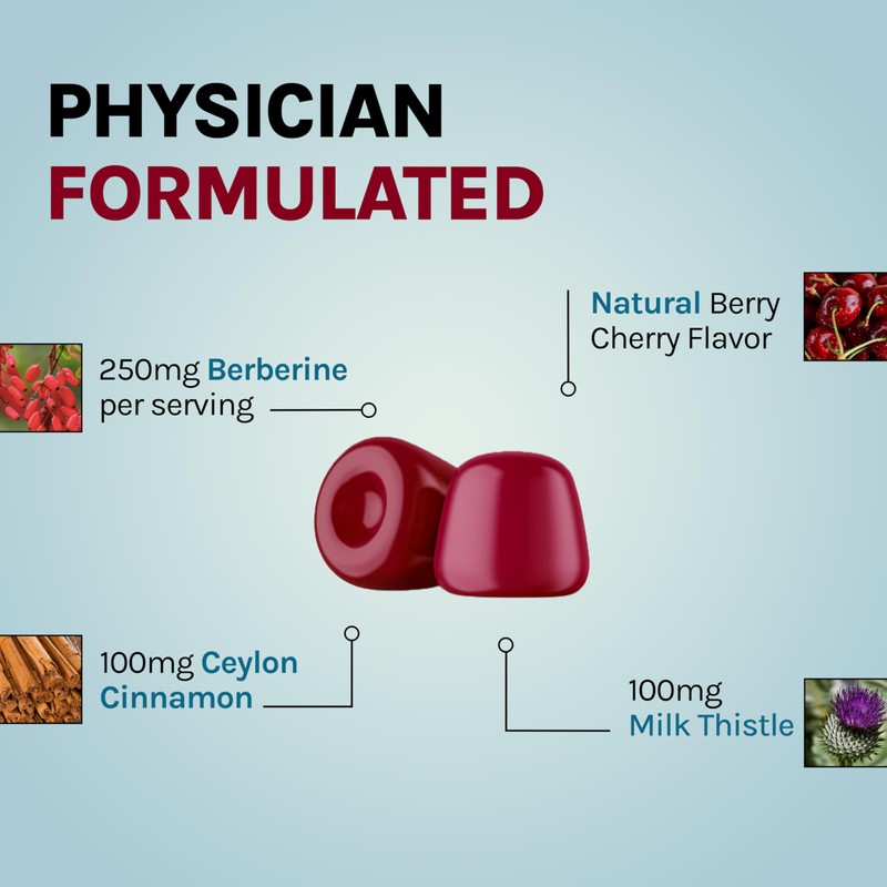 Vitamin Earth Berberine Gummies with Berberine HCL, Ceylon Cinnamon & Milk Thistle for Immune and Metabolism Support - Berry Cherry Flavor - 60 Count