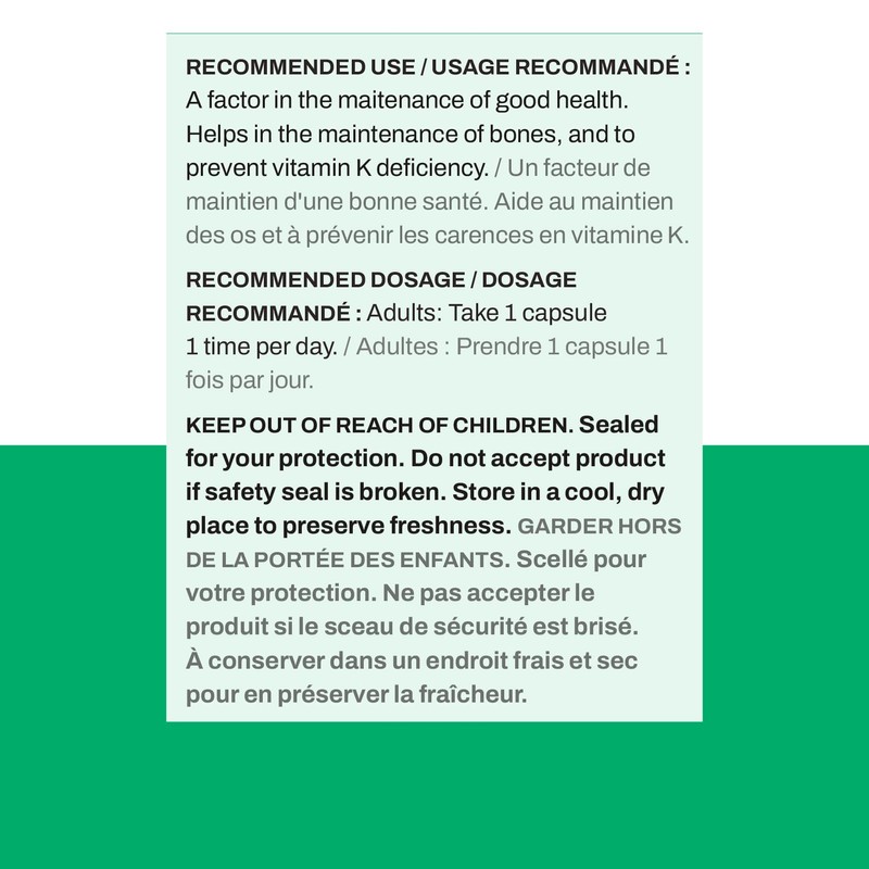 Vitamin K2 120mcg | Supplement with Premium MK-7 | Non-GMO Formula with Maximum Absorption | Made in Canada