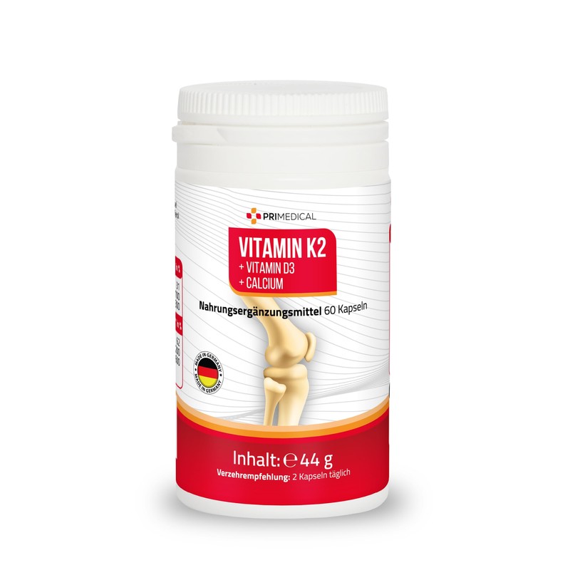 • 60 capsules with vitamin K2 + vitamin D3 + calcium