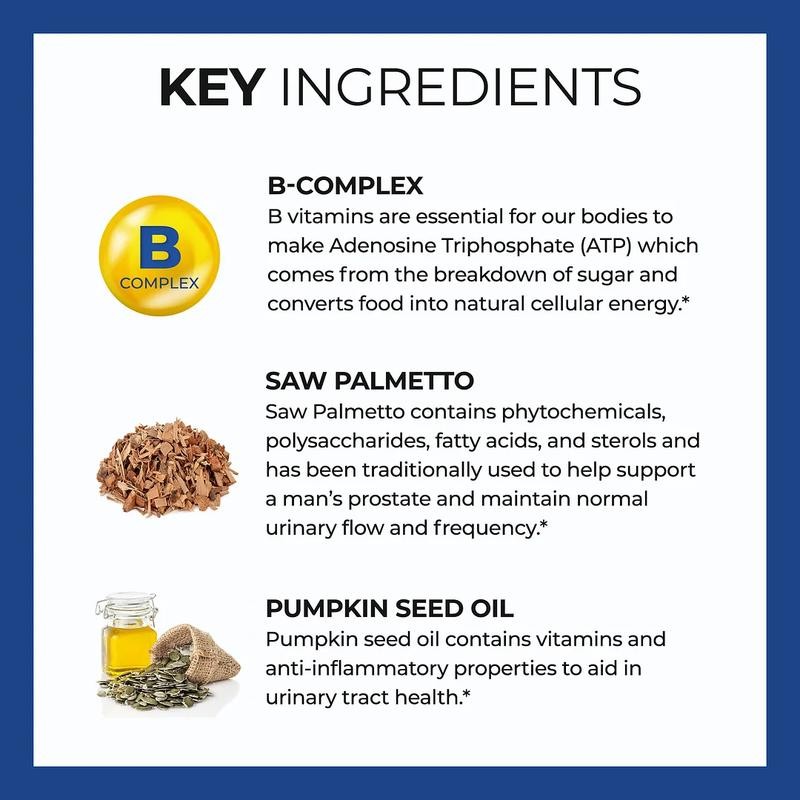 - Ingredients: Pumpkin Seed Oil,Saw Palmetto,B-Complex