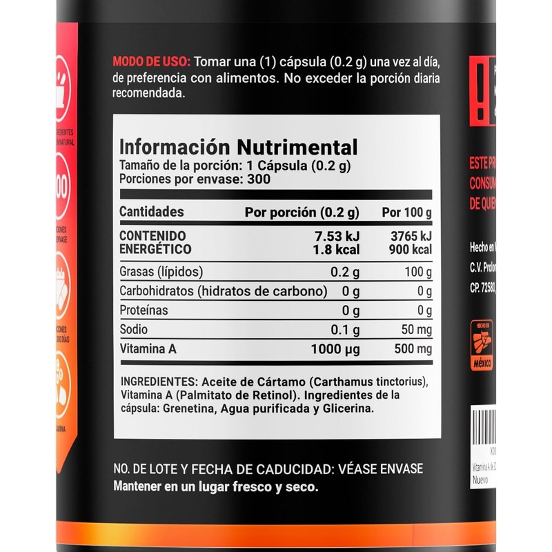 Vitamina A 300 Cápsulas Blandas con 1000 mcg por porción. Ingredientes naturales. A Blend. B Life