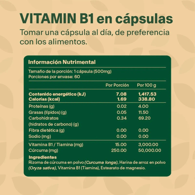 ✔️ Fórmula natural: Vitamina B1 + Extracto de Cúrcuma.