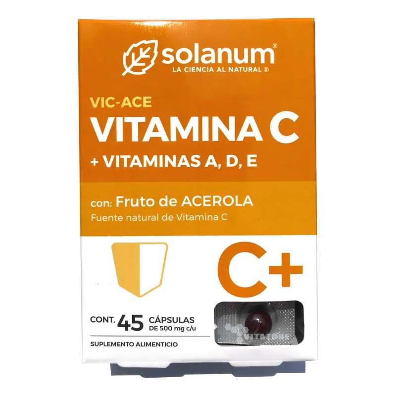Vitamina C + A + D y E 45 capsulas Solanum Perlacaps 500mg c/u
