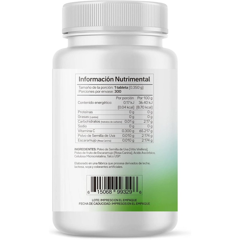 - 🟢 🍃 Cada tableta contiene 300 mg de Vitamina C, la dosis mínima recomendada como suplemento y para que sea benéfica para tu salud.