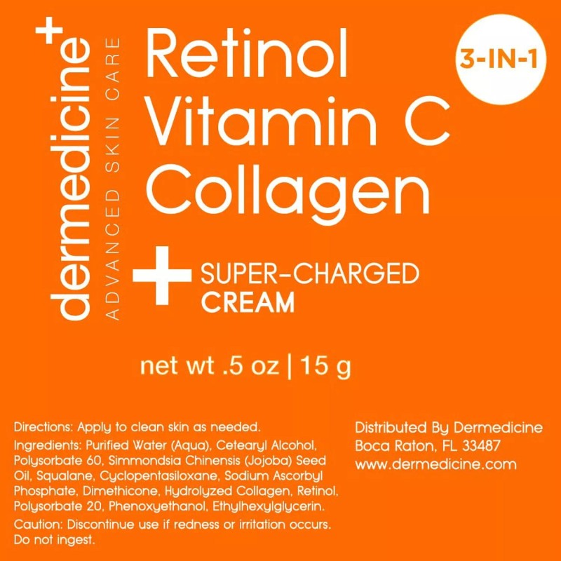 Vitamin C + Retinol + Collagen | Super Charged Anti-Aging Cream for Face | Ph... Product Overview Size: 0.50 Fl Oz (Pack of 1) Our super charged anti aging cream is a powerhouse combination of Retinol, Vitamin C and Collagen to help your complexion appear more even, youthful and bright while helping to fade the appearance of fine lines and wrinkles, blotchiness, dark spots, hyper pigmentation and unevenness that becomes more apparent as we age. It is suitable for both men and women of all skin types and tones including normal, sensitive, mature, older, fair to darker skin tones such as African-American, Asian, Latin, Indian and Mediterranean. To use, wash face using a cleanser and pat dry. Avoiding direct eye contact, apply a thin layer of cream to entire face and allow to absorb. Apply twice daily (AM / PM). Can be worn under moisturizer, sunscreen and makeup. Caution: Discontinue use if redness or irritation occurs. Do not ingest. MADE IN THE USA