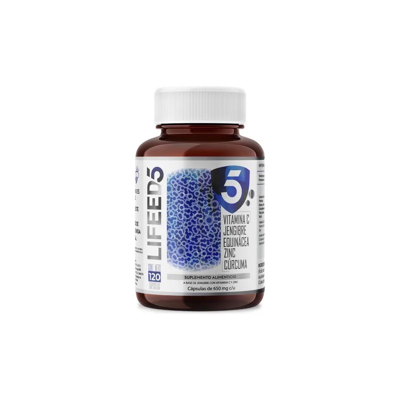 - LIFEED5 IMMUNE es un suplemento avanzado diseñado tanto para mujeres como para hombres, con el objetivo de fortalecer el sistema inmunológico a través de una combinación poderosa de vitaminas y minerales. Este producto contiene Vitamina C, Vitamina D3, Equinacea, Zinc, Jengibre y Cúrcuma, todos reconocidos por sus propiedades antioxidantes y estimulantes del sistema inmunológico. Con 120 cápsulas por envase, proporciona un suministro completo para 120 días, asegurando una dosificación diaria constante y fácil de manejar. Ficha Técnica: