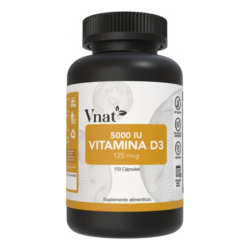 Vitamina D3 125mcg 5000iu Vnat 150 Caps Corazon Huesos Salud Sabor Neutro