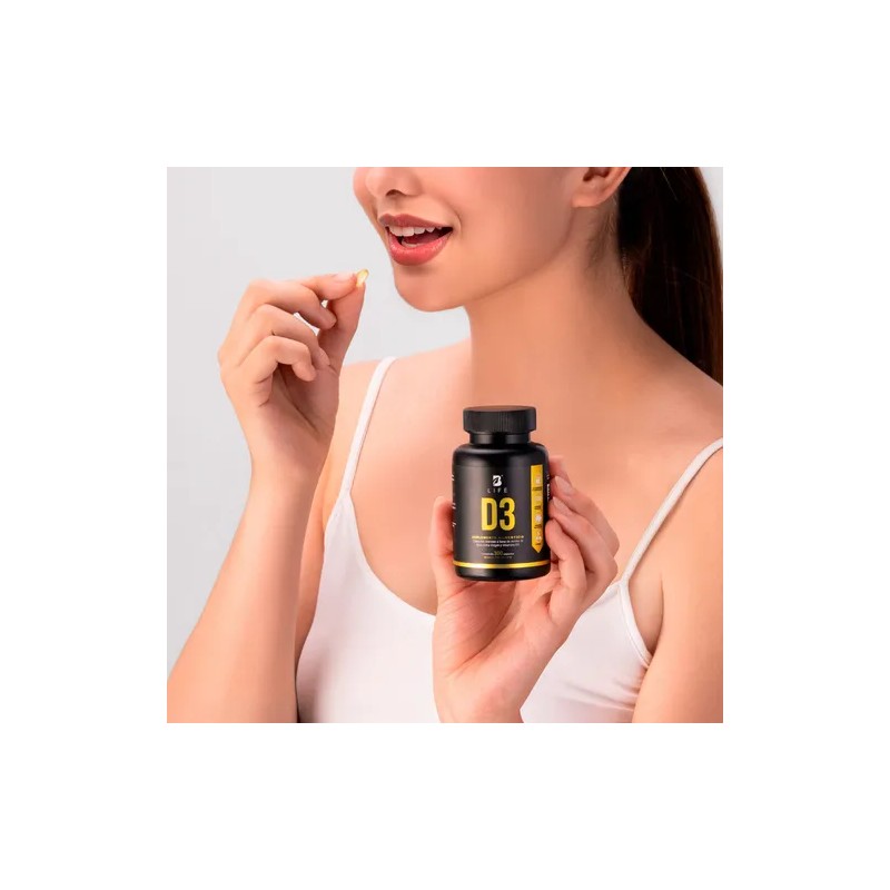 D3+ B Life es tu aliado para la vitalidad. Cada cápsula de 200 mg contiene una mezcla de Vitamina D3 (5000 UI) enriquecida con Aceite de Oliva Extra Virgen, que no solo mejora la absorción sino que también potencia sus beneficios. Una combinación exclusiva de componentes sinérgicos que se distingue de otras presentaciones. El envase incluye 300 cápsulas.