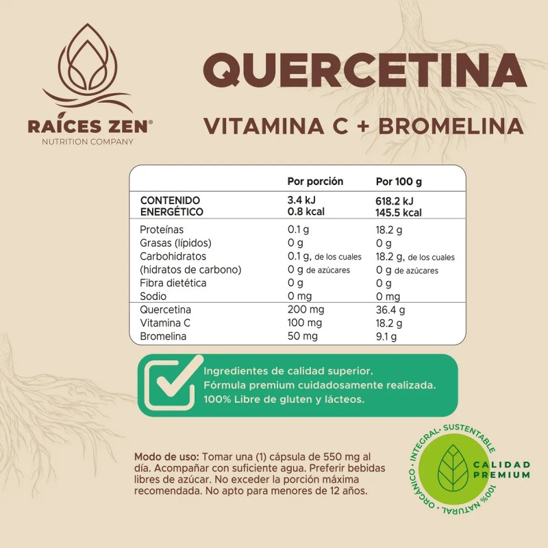 Quercetina Vitamina C Bromelina 120 Cápsulas Raíces Zen Super Premium