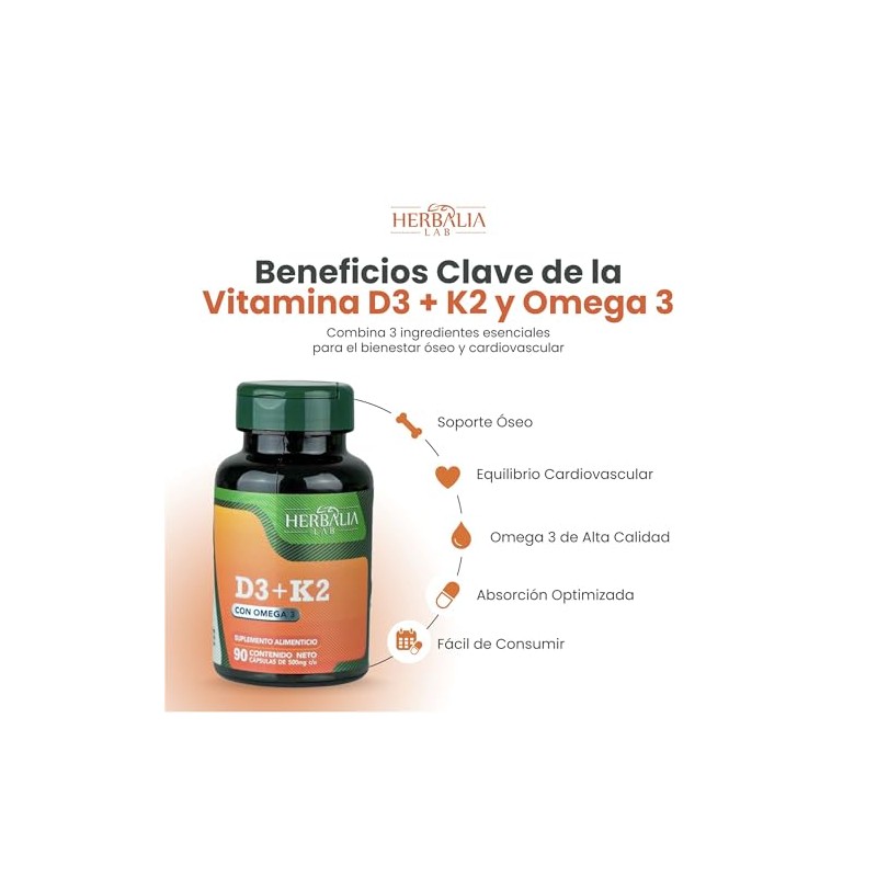 HERBALIA LAB - Vitamina D3 + K2 con Omega 3 - Apoyo Óseo, Cardiovascular y Cerebral - Formula Avanzada 90 Cápsulas Herbalia Lab. 🏆 Reconocido por su excelente relación calidad-precio. Tecnología avanzada y rendimiento superior. ⭐ Miles de reseñas positivas. Ideal para quienes buscan lo mejor en calidad y estilo. Producto auténtico con satisfacción total asegurada. ¡No te quedes sin el tuyo y aprovecha esta oportunidad única!
