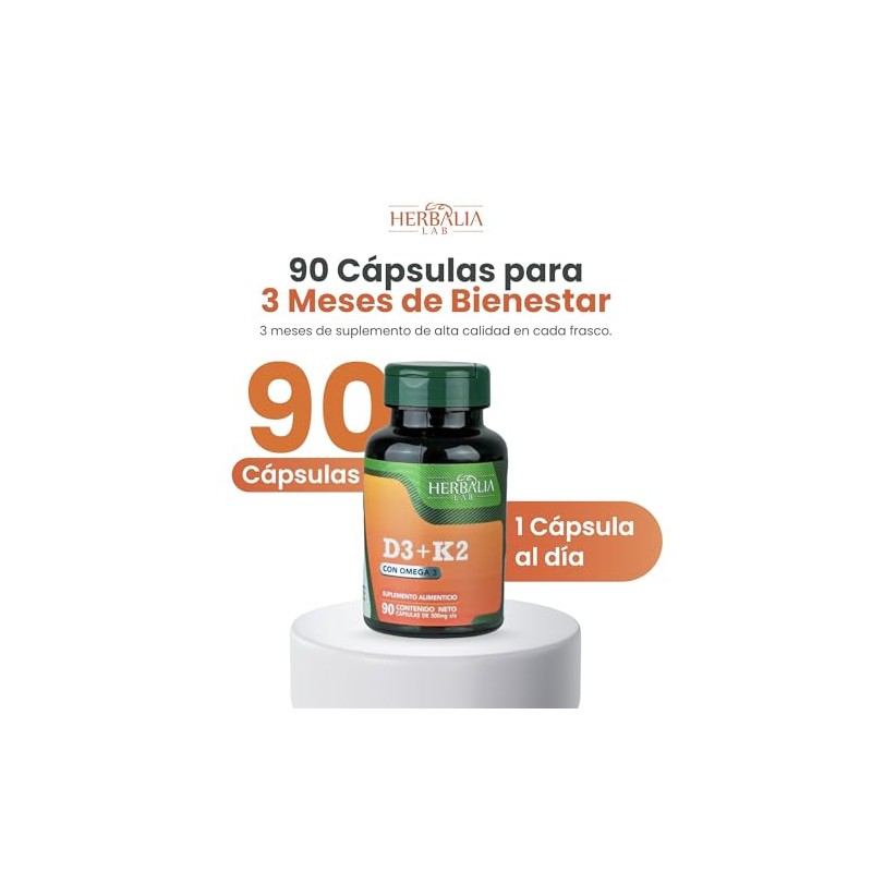 🌟 ⭐ Vitamina D3 + K2 con Omega 3 - Apoyo Óseo, Cardiovascular y Cerebral - Formula Avanzada 90 Cápsulas Herbalia Lab ⭐ 🌟
