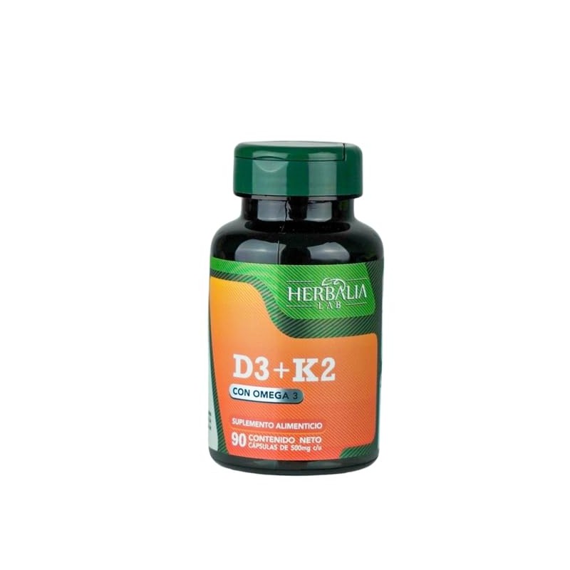 Vitamina D3 K2 con Omega 3 - Apoyo seo, Cardiovascular y Cerebral - Formula Avanzada 90 Cpsulas Herbalia Lab