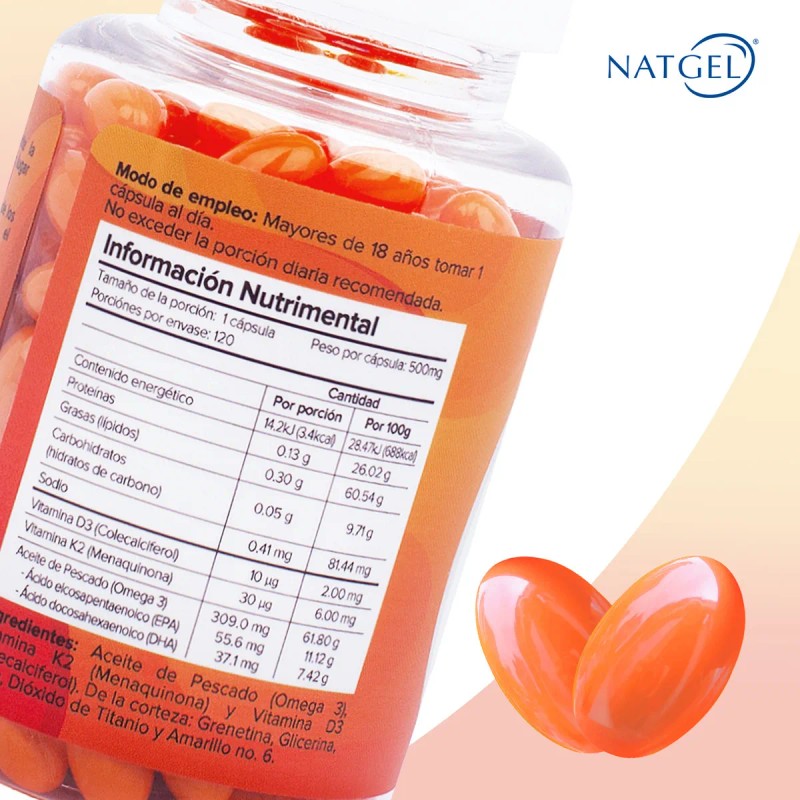 Natgel D3 + K2 + Omega 3 es una fórmula completa y sinérgica que une tres potentes nutrientes para el bienestar integral del cuerpo. Especialmente diseñada para fortalecer huesos, apoyar el sistema cardiovascular y mejorar la respuesta inmunológica, esta fórmula es ideal para quienes buscan una salud robusta a cualquier edad.