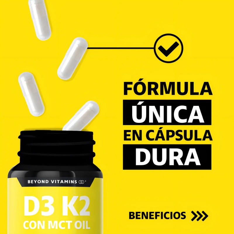 Vitamina D3 + Vitamina K2 + Mct Oil | Sin Azúcar - Suplemento Alimenticio Vegano Beyond Vitamins - Ingredientes Non Gmo (60 Cápsulas)