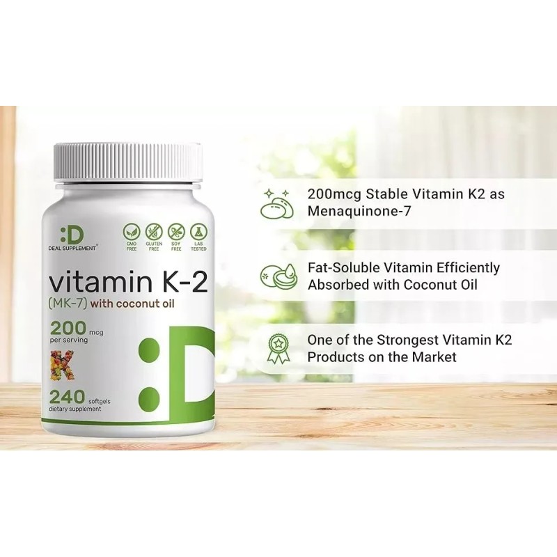 Características especiales: cápsulas blandas de vitamina K2 de triple fuerza de 200 mcg, absorbidas eficientemente con una base líquida de aceite de coco virgen saludable, proporciona un micronutriente esencial de absorción más completo que está hecho con dos formas de alta calidad de K2 como MK-7 y MK-4.