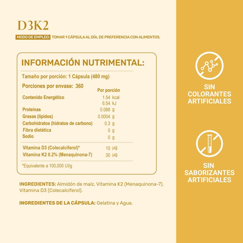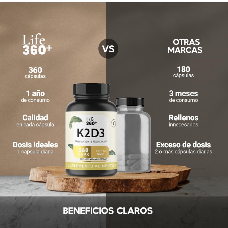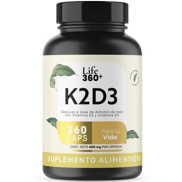 Vitamina K2 Y D3 360 Cápsulas | 360 Dosis | LIFE 360+ Vitamina K2 Con Vitamina D3