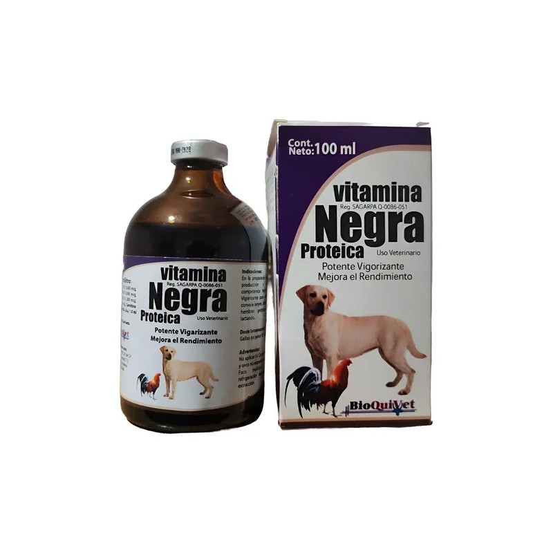 La Vitamina Negra Proteica BIOQUIVET de 100 ml es un complemento nutricional diseñado específicamente para mejorar la salud y el rendimiento de gallos, aves, caballos y cánidos. Este producto se destaca por su concentración de proteínas de alta calidad, que asegura una óptima digestión y asimilación por parte de los animales. Su fórmula única contribuye al fortalecimiento muscular y al mantenimiento de un sistema inmunológico robusto, ideal para animales de competición o que requieren una atención nutricional especial.