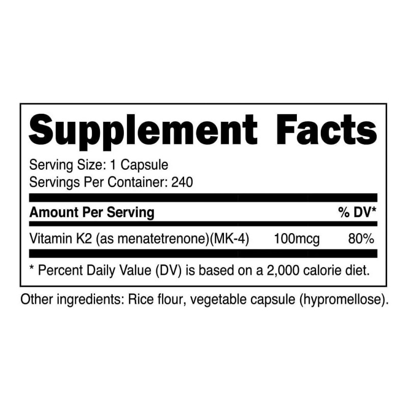 Vitamina Vitamin K2 Más Potente 100mcg 240 Caps Eg T06