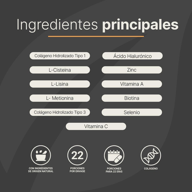 Hasta 22 días de consumo por envase. Ingiriendo ingredientes naturales de la más alta calidad.