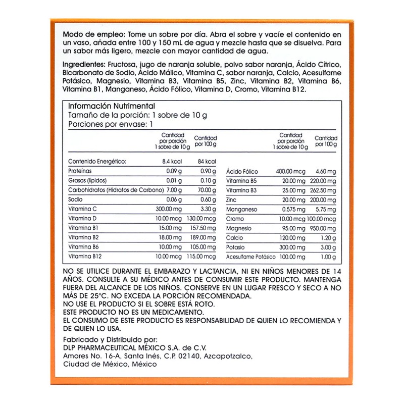 Vitaminas Complejo B Y Antioxidantes 10 Sobres Sabor Naranja