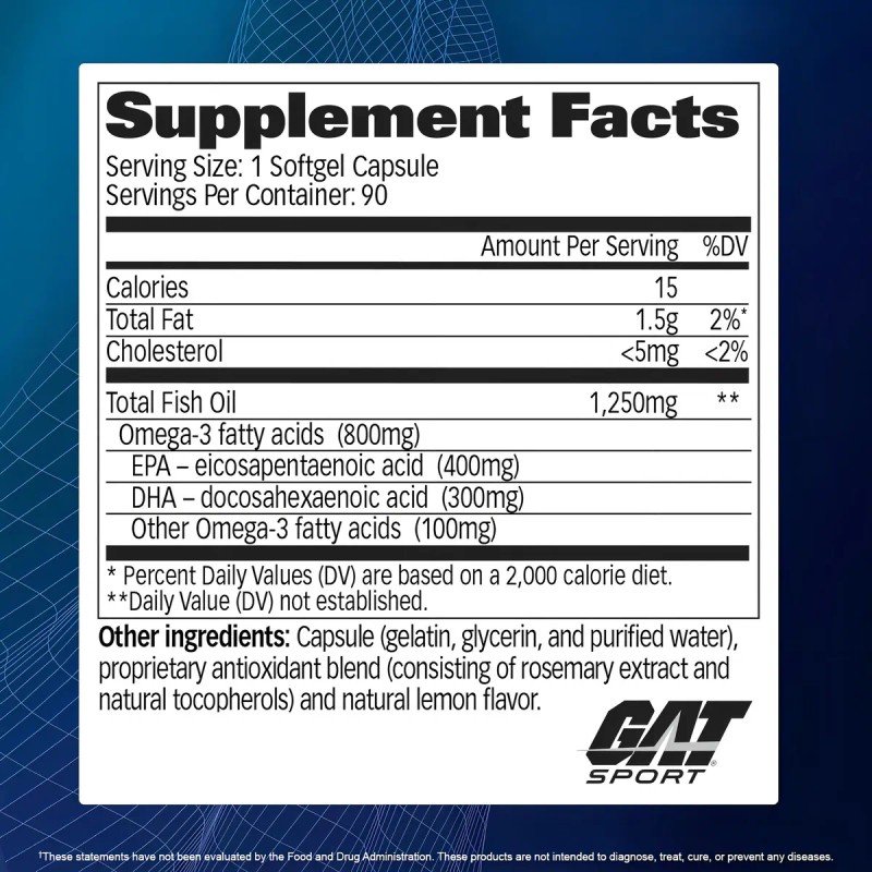 - GAT Sport se compromete a formular productos que ayuden a los atletas a alcanzar su máximo potencial. Este Omega 3 se integra perfectamente en una rutina de vida activa, proporcionando los nutrientes clave para un cuerpo fuerte y funcional.