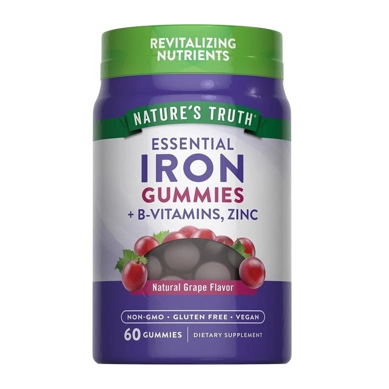 Vitamins Nature's Truth Essential Iron + B-vitamins, Zinc Gummies Natural Grape 60 EA