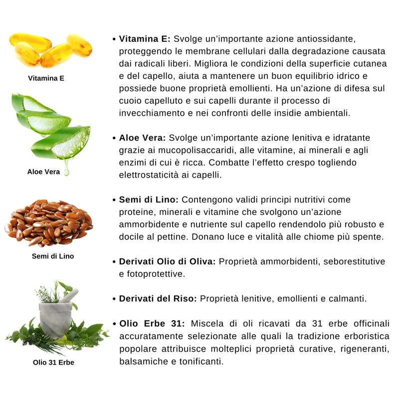 - Specific formulation, rich in vitamins, natural extracts and medicinal herbal oils from Olio 31