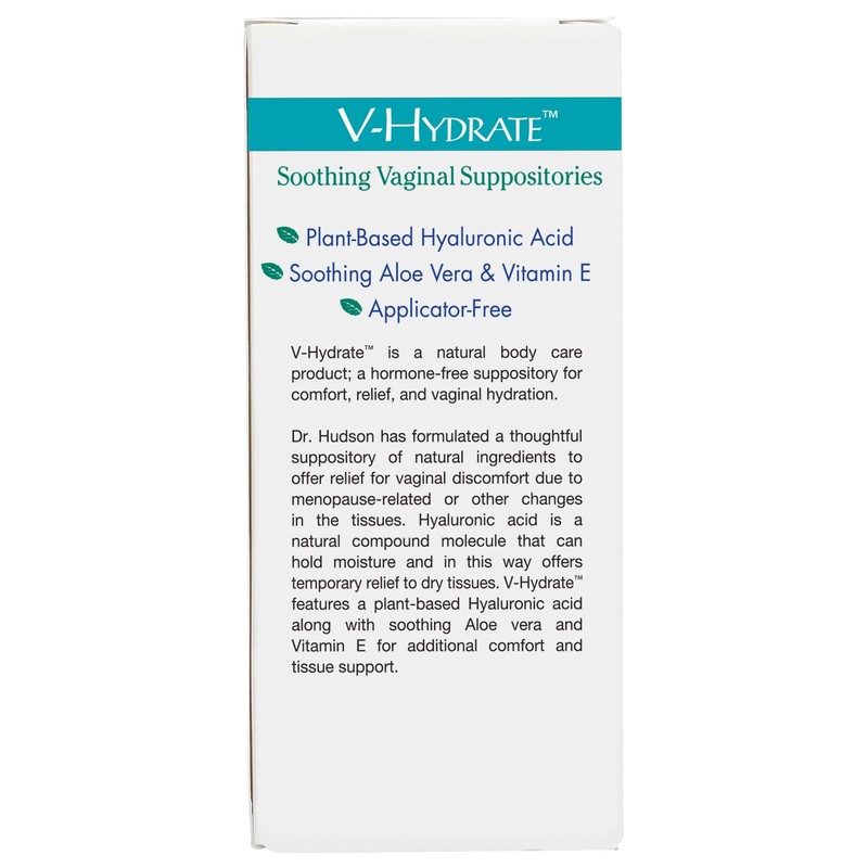 Utilizing the humectant properties of hyaluronic acid, this soothing suppository offers relief and hydration for vaginal tissues. Formulated by Dr. Tori Hudson with plant-based hyaluronic acid, aloe leaf juice and Vitamin E.