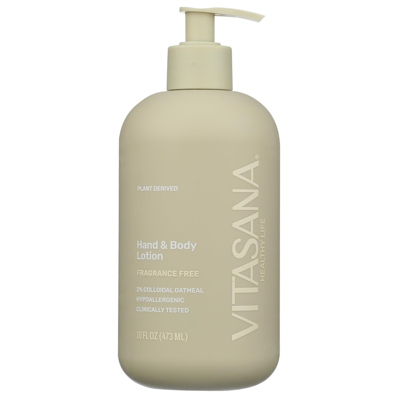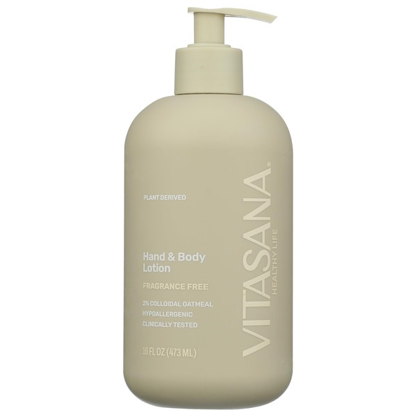 Vitasana Hydrating Hand & Body Lotion, 16 oz – Fragrance‑Free, 99% Plant‑Derived with 2% Colloidal Oatmeal, EWG Verified, Hypoallergenic, Paraben‑Free, Sulfate‑Free, Cruelty‑Free