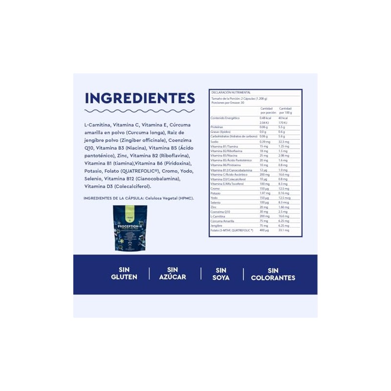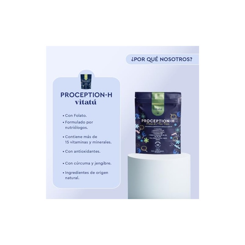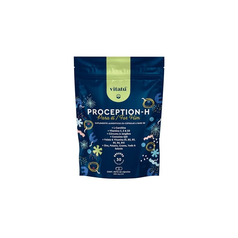 🌟 ⭐ Vitatú | Proception suplemento para hombre con Zinc, Folato, L-Carnitina, Vitamina D3, Q10, Vitamina C, E, Cúrcuma y Jengibre, 60 cápsulas. Vitaminas, Minerales y Antioxidantes diseñado para Hombre. ⭐ 🌟